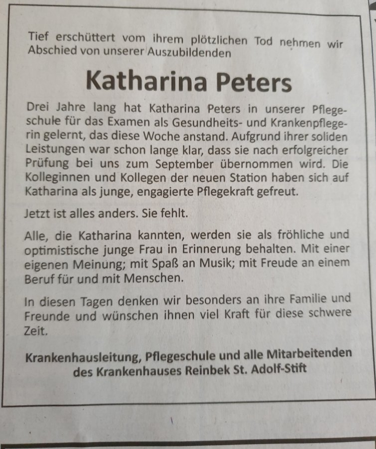 Katharina Petersgestorben am 5. August 2020