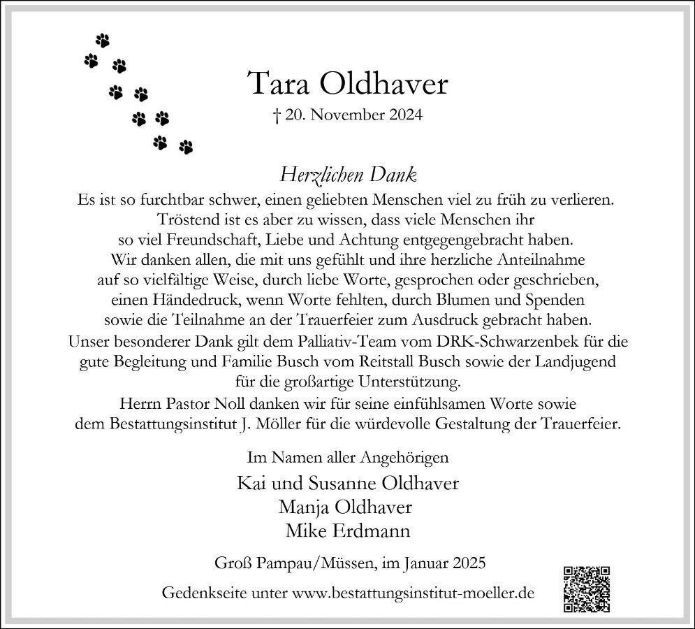 in diesen schweren Stunden des Abschieds möchten wir Ihnen unser aufrichtiges Beileid aussprechen. Die Zuneigung und das Mitgefühl, die Tara für Tiere empfand, spiegeln die Reinheit ihrer Seele wider. Wir möchten uns aufrichtig bei Ihnen und allen Angehörigen für Ihre großzügigen Spenden bedanken.